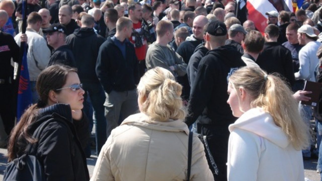 Neonazitreffen in Dresden Februar 2009. Frauen sind als „unsere Mädels“ dabei