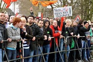 180 Teilnehmer beim „Pro NRW“-„Parteitag“ auf Schloss Horst – die offiziell keine Rassisten sein wollten. 140 Gegendemonstranten blockierten eine Stunde lang die Zufahrt, „Pro NRW“ musste den Hintereingang nehmen. 350 Gegendemonstranten protestierten mit Demo. (DerWesten, Fotostrecke, Presse-Portal).