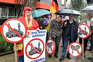 Das „islamkritische Aktionwochenende“ von „Pro NRW“ offenbart vor allem deren schlechte personelle Ausstattung: Sprach „Pro“-Chef Markus Beisicht im Vorfeld vollmundig von „1.000“ geplanten Teilnehmern bei „Sternmarsch“ nach Duisburg-Marxloh, fanden sich lediglich 150 Menschen beim „Höhepunkt“ des „Pro NRW“-Wochenendes ein – und standen so rund 10.000 Gegendemonstrantinnen und -demonstranten gegenüber. Schon am Freitag musste „Pro NRW“ die geplanten Teilnehmer ihrer „Mahnwachen“ im gesamten Ruhrgebiet halbieren: Angemeldet waren je 60 Teilnehmer, geschafft haben es nur 30-40 Männer und Frauen, vor Moscheen in Oberhausen, Essen, Mühlheim, Herten, Gelsenkirchen, Duisburg und Bochum, jeweils erwartet von einem vielfachen an Gegendemonstranten. Auch der „Programmparteitag, den „Pro NRW“ am Samstag auf Schloss Horst in Gelsenkirchen abhielt, stieß auf so ausführliche Proteste, dass die rund 180 Teilnehmenden auf den Hintereingang angewiesen waren.