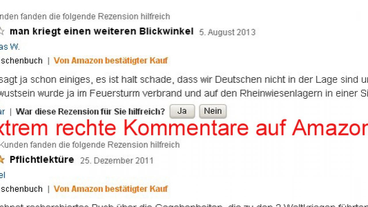 Das der Versandhändler Amazon immer wieder einmal Erzeugnisse verkauft, die rechtsextremes Gedankengut verbreiten, ist bekannt. Das American Jewish Committee stellte 2009 gar eine Strafanzeige gegen das Versandhaus. Eine neue Dimension erlangt die Thematik allerdings dadurch, dass rechtsradikale Nutzer*innen mittlerweile die Bewertungsfunktion der einzelnen Artikel nutzen, um gezielt für ihre Sache Stimmung zu machen. Trotz aller Kritik hält Amazon an der Position fest, ausschließlich strafrechtlich relevante Veröffentlichungen nicht zu vertreiben, da die Möglichkeit der Prüfung aller Inhalte nicht gegeben sei. Dies bestätigte auch Amazons Pressesprecherin Christine Höger gegenüber dem Blog „Störungsmelder“: „Amazon ist ein Händler, keine Regulierungsinstitution. Deswegen werden Kunden bei uns auch in Zukunft Titel finden, in denen bedenkliche Inhalte bezüglich des Nationalsozialismus geäußert werden.“ Gegenüber Belltower.news war Amazon nicht in der Lage, zeitnah eine Stellungnahme abzugeben. Es ist wenig verwunderlich, dass sich auch heute noch jede Menge Publikationen aus dem Spektrum der „Neuen Rechten“ und aus dem Lager der NS-Revisionist*innen im Bestand von Amazon finden. In deren Kielwasser schwimmen neuerdings auch eine größere Anzahl sehr aktiver rechtsextremer Kommentator*innen, die die Bewertungs- und Kommentarfunktion der Artikel nutzen, um deren Inhalte zu bewerben. Dabei wird generell versucht, den Anschein zu erwecken, dass es sich bei einschlägigen Büchern um seriöse Publikationen handelt. Diese Problematik beschreibt auch einer der Kommentator*innen, die sich gegen rechte Hetze bei Amazon wehren: “Die Rezensions- und Kommentarspalten von Amazon sind insofern eine Besonderheit, dass es nicht irgendein obskures Blut- und Boden-Forum ist, in das sich sowieso kein normaler Leser verirrt, sondern eins der größten deutschsprachigen Online-Foren. Wenn dort rechtsextreme Hetze und einschlägige Geschichtslügen unwidersprochen stehen, und dann noch mit massenhaft positiven Bewertungen und Hilfreich-Votes versehen sind, muss das jedem vielleicht etwas unerfahrenen Leser als seriös erscheinen”.