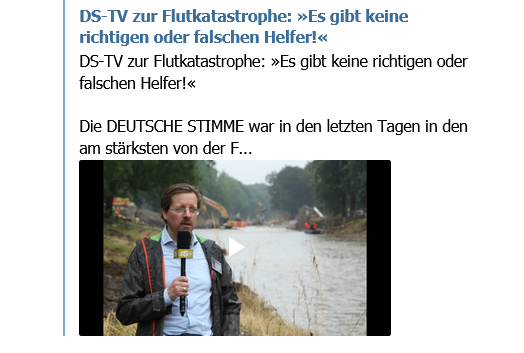 Auch die NPD-Postille „Deutsche Stimme“ war vor Ort und lieferte die unvermeidbaren Videoberichte vom Katastrophenort.
