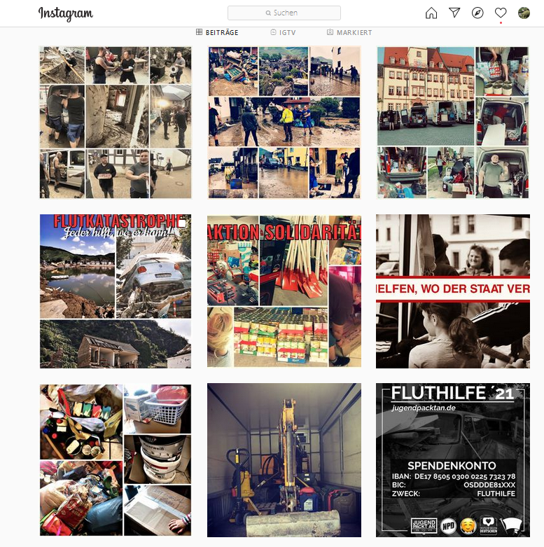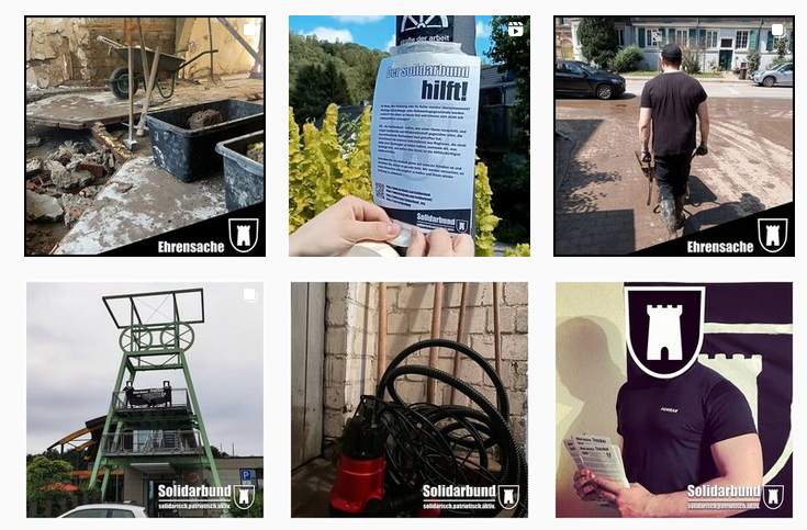 Die „Identitäre Bewegung“ liegt in Deutschland derart darnieder, dass sie sich bei der Flut nur über eine Tarnaktion präsentieren konnte – alle großen Social Media-Accounts sind ja gesperrt. Nun publiziert also der „Solidarbund“ auf Instagram und Facebook die üblichen Flutbilder.