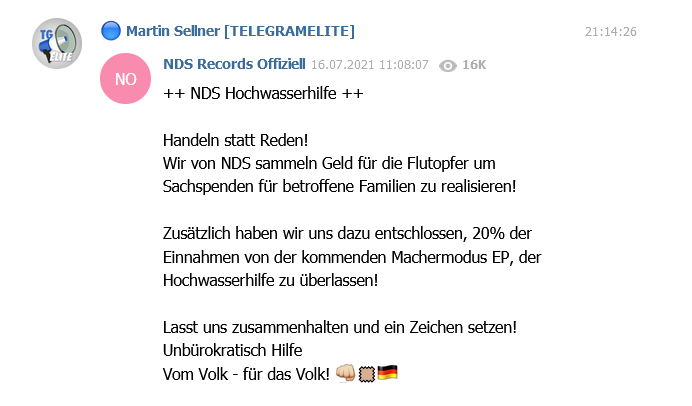 So nutze auch das Compact-Magazin von Jürgen Elsässer einen Hilfsaufruf für unzählige Artikel und natürlich Telegram-Postings, um die dreiste Desinformation zu verbreiten, nur Rechte würden helfen, die Regierung oder NGOs allerdings nicht. Und damit soll noch lange nicht Schluss sein.