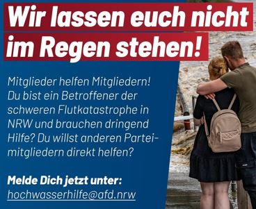 Andere AfD-Aktionen muten weniger heroisch an. Etwa bietet die AfD NRW Hilfe vor allem für AfD-Mitglieder an, mit kreativer Rechtschreibung.