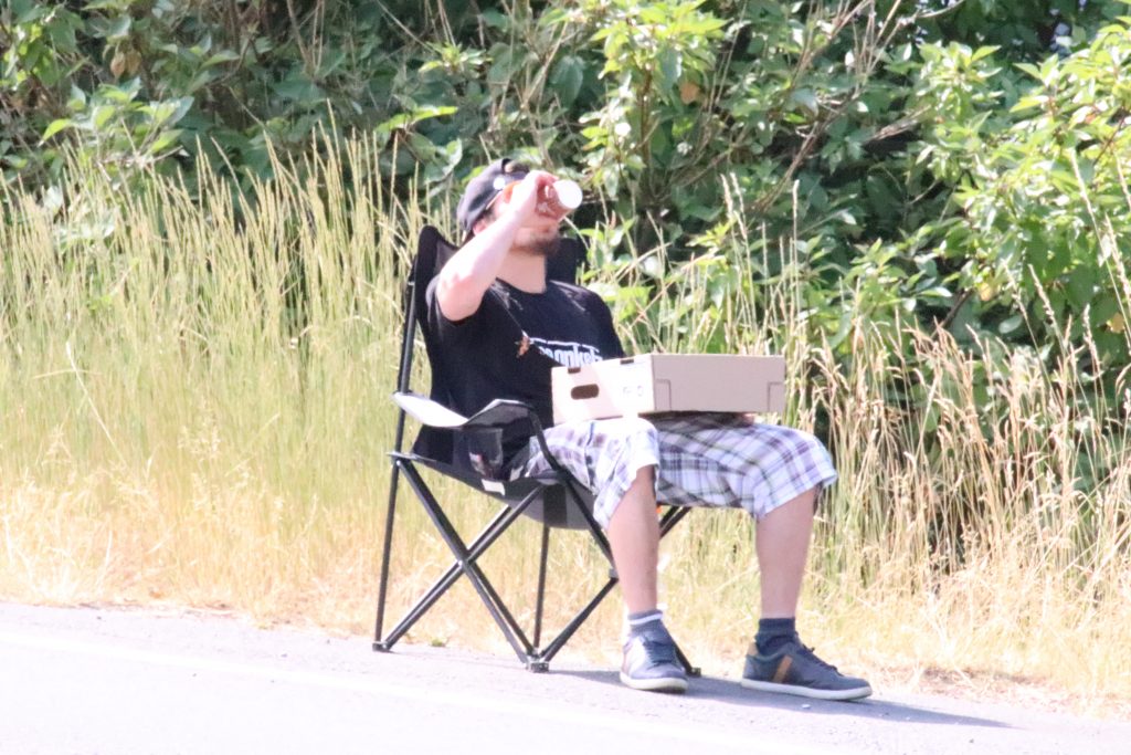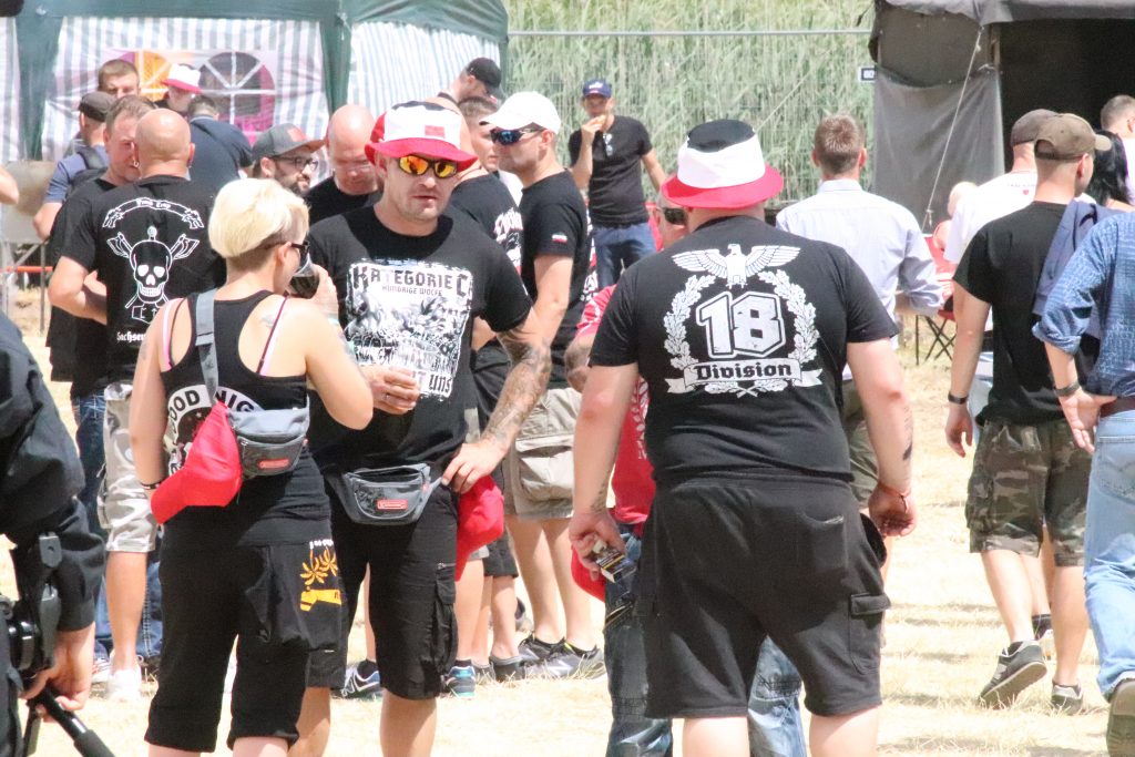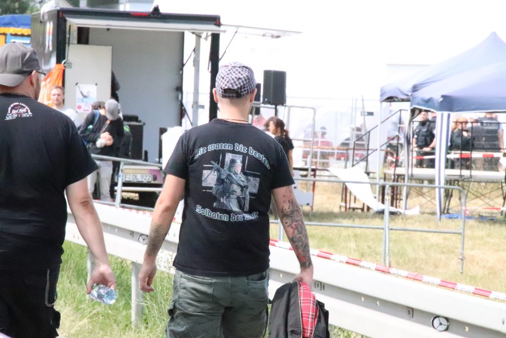 Eine Parkfläche für die Neonazis lag ganze 14 Kilometer vom Veranstaltungsgelände entfernt. Dieser Festival-Besucher „bewachte“ den Parkplatz:
