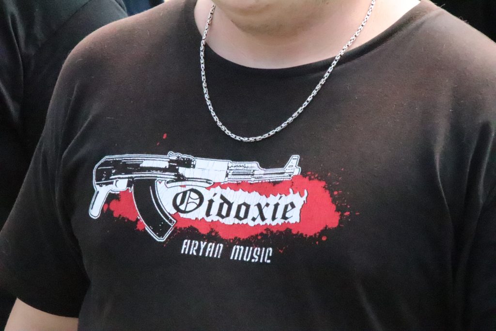 Der linke Neonazi spuckte einer Journalistin auf ihr T-Shirt:
