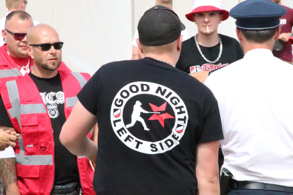 Den Ordnerdienst machten Neonazis in NPD-Schutzzonen Uniformen: