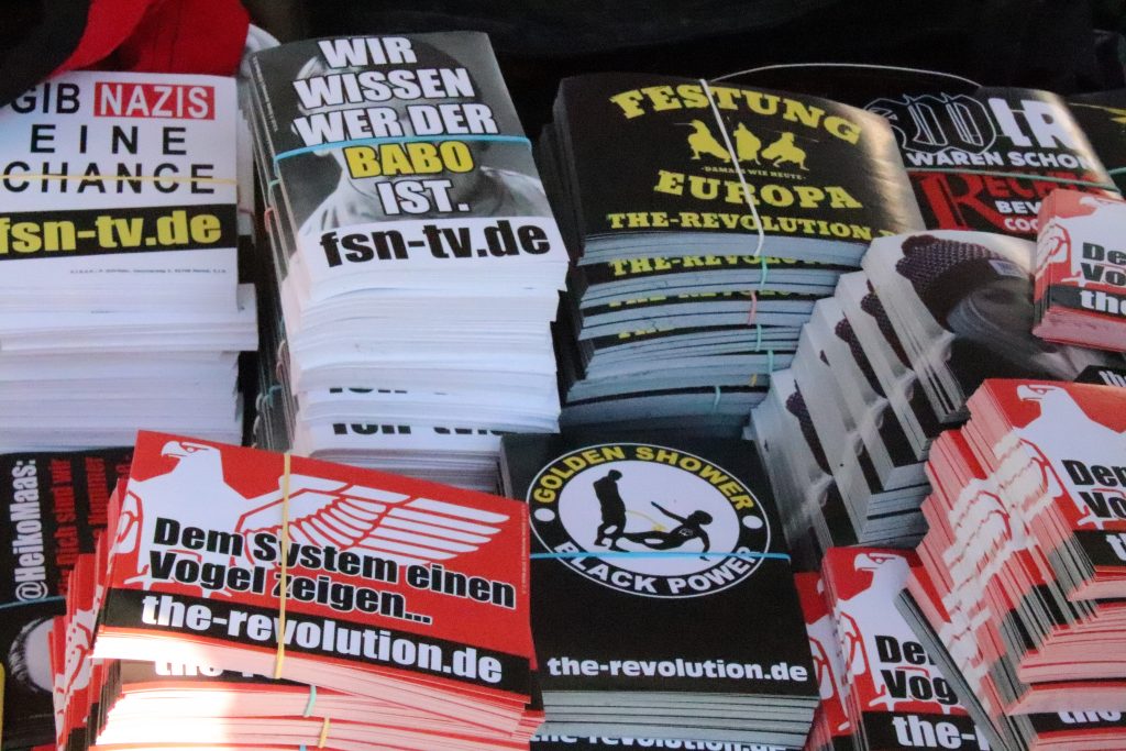 Werbung für „Bündnis Zukunft Heimat“ der extrem rechten Partei von Mitorganisator Tommy Frenck: