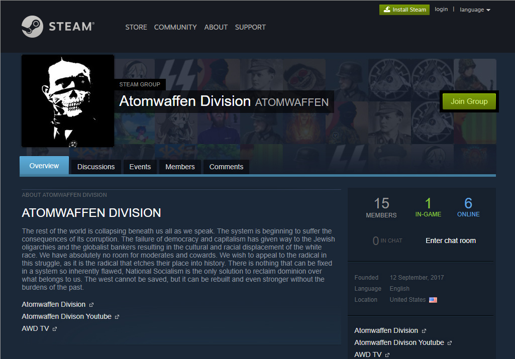 Auf Telegram beobachtet das Projekt „De:Hate“ der Amadeu Antonio Stiftung ein Netzwerk aus pro-rechtsterroristischen Kanälen, auf denen auch „Atomwaffen Division“-Inhalte rasant geteilt und gefeiert werden. Attentäter werden dort als „Saints“ (Heilige) verehrt.