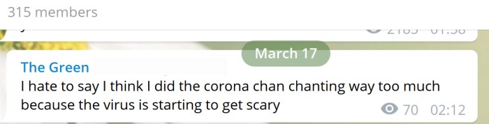 Anfangs hat die rechtsterroristische und meme-interessiert Online-Szene Corona so sehr gefeiert, dass das Bild von „Corona Chan“ entwickelt wurde – der Virus als asiatisches Manga-Mädchen, dem mit „Hail Corona Chan“ gehuldigt wurde.