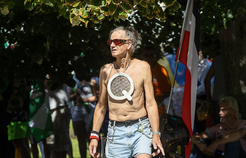 Viele der unterschiedlichen Ideologien, die bei der Veranstaltung vertreten wurden, sind untereinander inkompatibel und manche gar widersprüchlich. Aus einigen Symbolen, wie z.B. einer Halskette, die Trump neben Putin zeigt, konnten wir uns keinen Reim machen.
