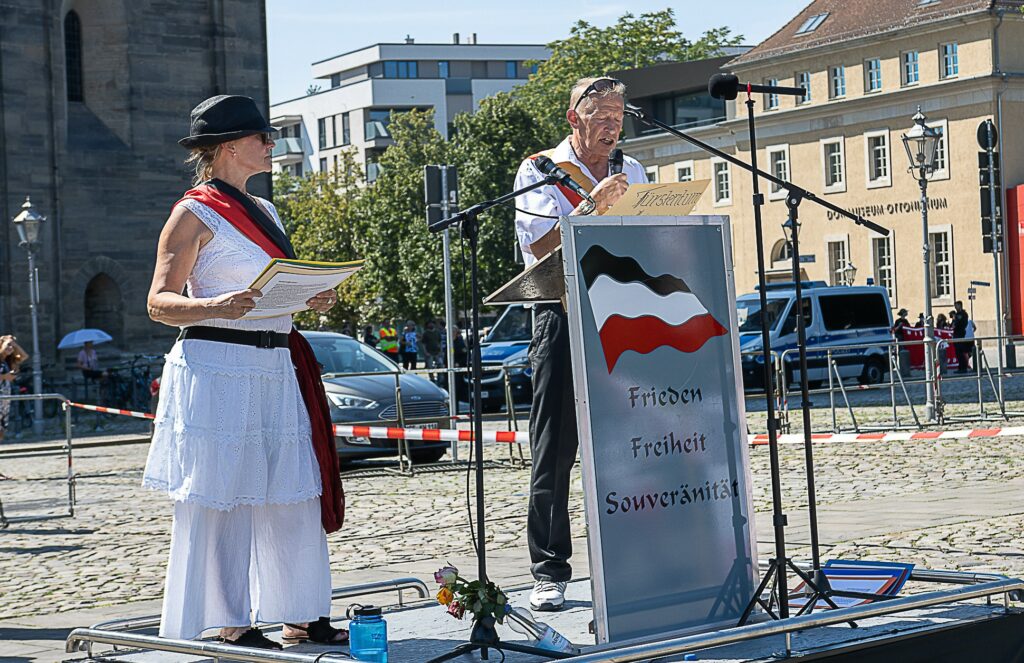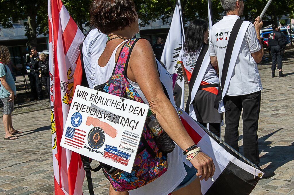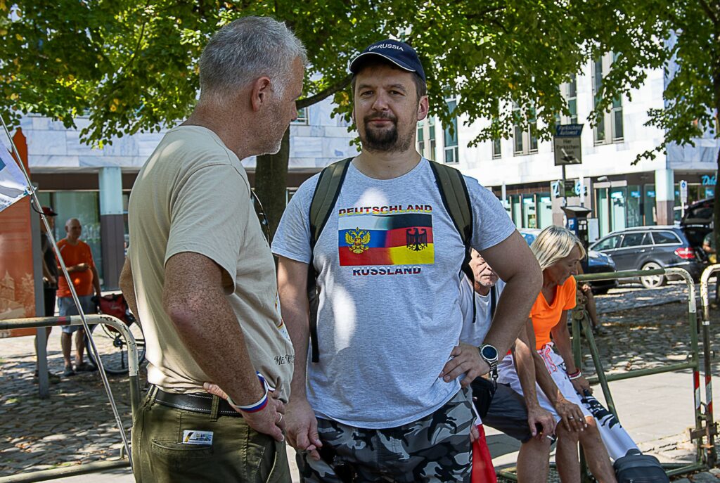 Da es große Überschneidungen zwischen der Friedensbewegung und den Reichsbürgern gibt, wundert es nicht, dass die Russlandfreundlichkeit der Friedensbewegung auch auf dieser Veranstaltung zum Ausdruck kam. Mehrfach wurde sich im Kontext des Angriffskrieges auf die Ukraine mit dem russischen Aggressor solidarisiert.