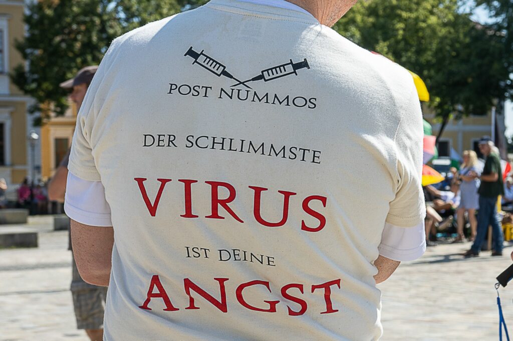 Neben „impfkritischen“ Narrativen, die Bill Gates unterstellen, die Menschheit während der Corona-Pandemie durch Massenimpfung und Impfzwang vergiften zu wollen, wurden „Theorien“ wie der „Great Reset“ oder „QAnon“ auf Kleidungsstücken, Schildern oder Aufklebern aufgegriffen. Natürlich war die klassische Reichsbürgererzählung von der „BRD GmbH“ auch im Repertoire vorhanden.