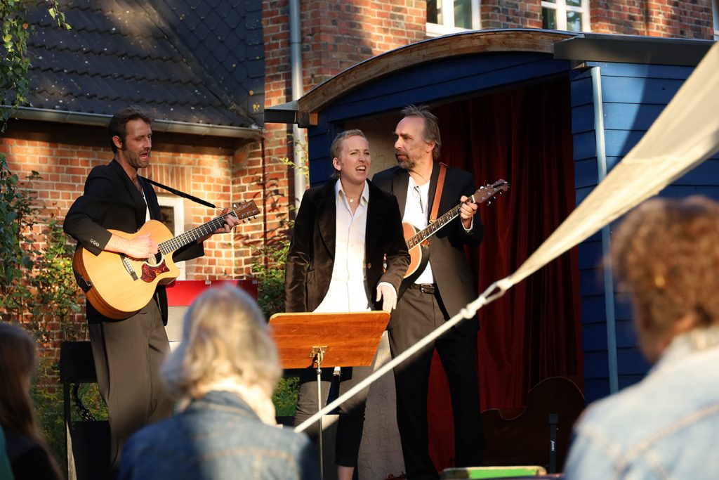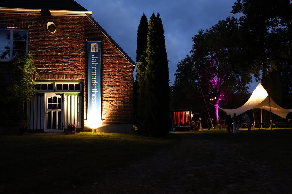 Ein sonniger Samstag Anfang September, er fühlt sich an wie der letzte Tag des Sommers. Das Jahrmarktheater liegt in Bostelwiebeck, ein Dorf so klein, das es nicht einmal einen Wikipedia-Eintrag hat. Der Kulturhof mit Scheune, Grünfläche und Bühne ist ein Ort für Performances, Konzerte und Diskussionen fernab der großstädtischen Hektik. Hier führen weit und breit keine Autobahnen vorbei. Auf der schmalen Landstraße, die ins Dorf führt, sind pink-gelbe Holzkreuze von der Initiative „beherzt“ zu sehen, mit der Aufschrift: „Kreuz ohne Haken – fuer Vielfalt“ – ein Zeichen gegen Rechtsextremismus im Umkreis Uelzen.