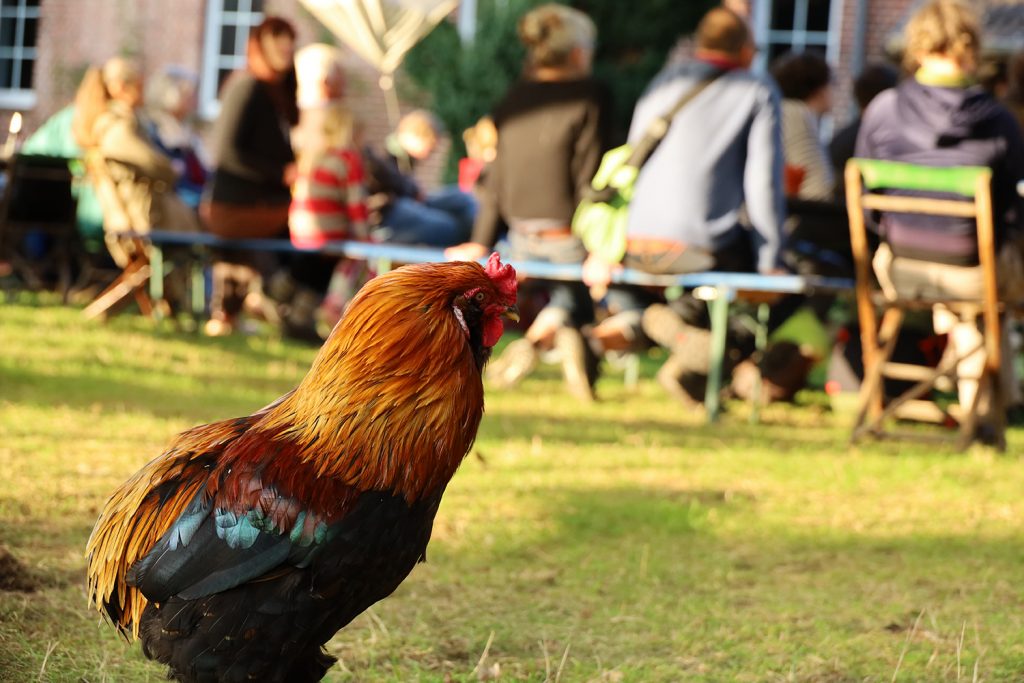 Heute zeigt das Dorf aber sein anderes Gesicht: Zwischen gackernden Hühnern und schlafenden Schweinen treffen sich 60 Menschen aus verschiedenen Regionen auf dem Kulturhof des Jahrmarkttheaters. Was sie vereint: Sie haben völkische Nachbar:innen, sind besorgt, wollen sich informieren, ihr solidarisches Netzwerk ausbauen. Doch so einfach ist das nicht, sich hier zu vernetzen: Die Einlasskontrolle ist gründlich, der Besuch nur mit Voranmeldung möglich. Ein schwarzbekleidetes Security-Team mit Sonnenbrillen patrouilliert das Gelände. Denn immer wieder versuchen völkische Rechtsextreme, solche Veranstaltungen zu stören: Sie mischen sich unter das Publikum, schüchtern Teilnehmende ein, stechen Autoreifen platt. Die Botschaft ist klar: Niemand soll über sie berichten, sie bleiben lieber im Verborgenen.