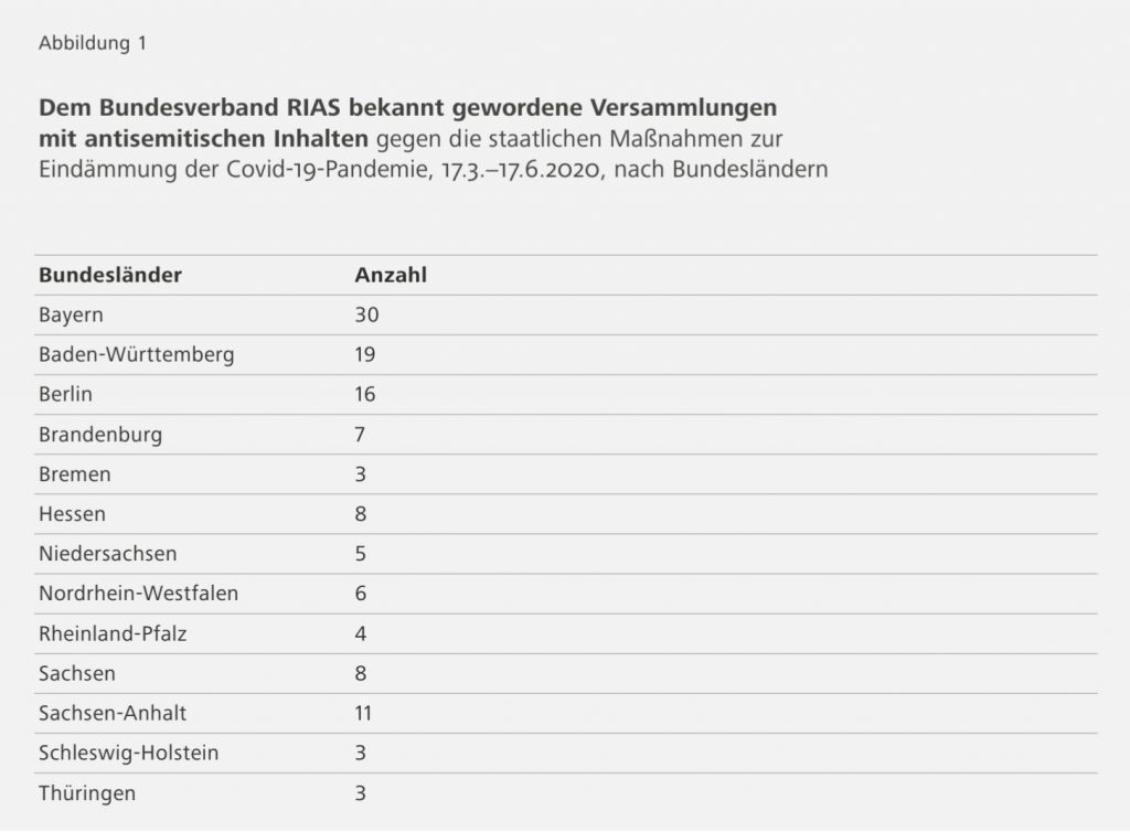 RIAS-Bericht als pdf zum Download: https://report-antisemitism.de/documents/2020-09-08_Rias-bund_Antisemitismus_im_Kontext_von_covid-19.pdf