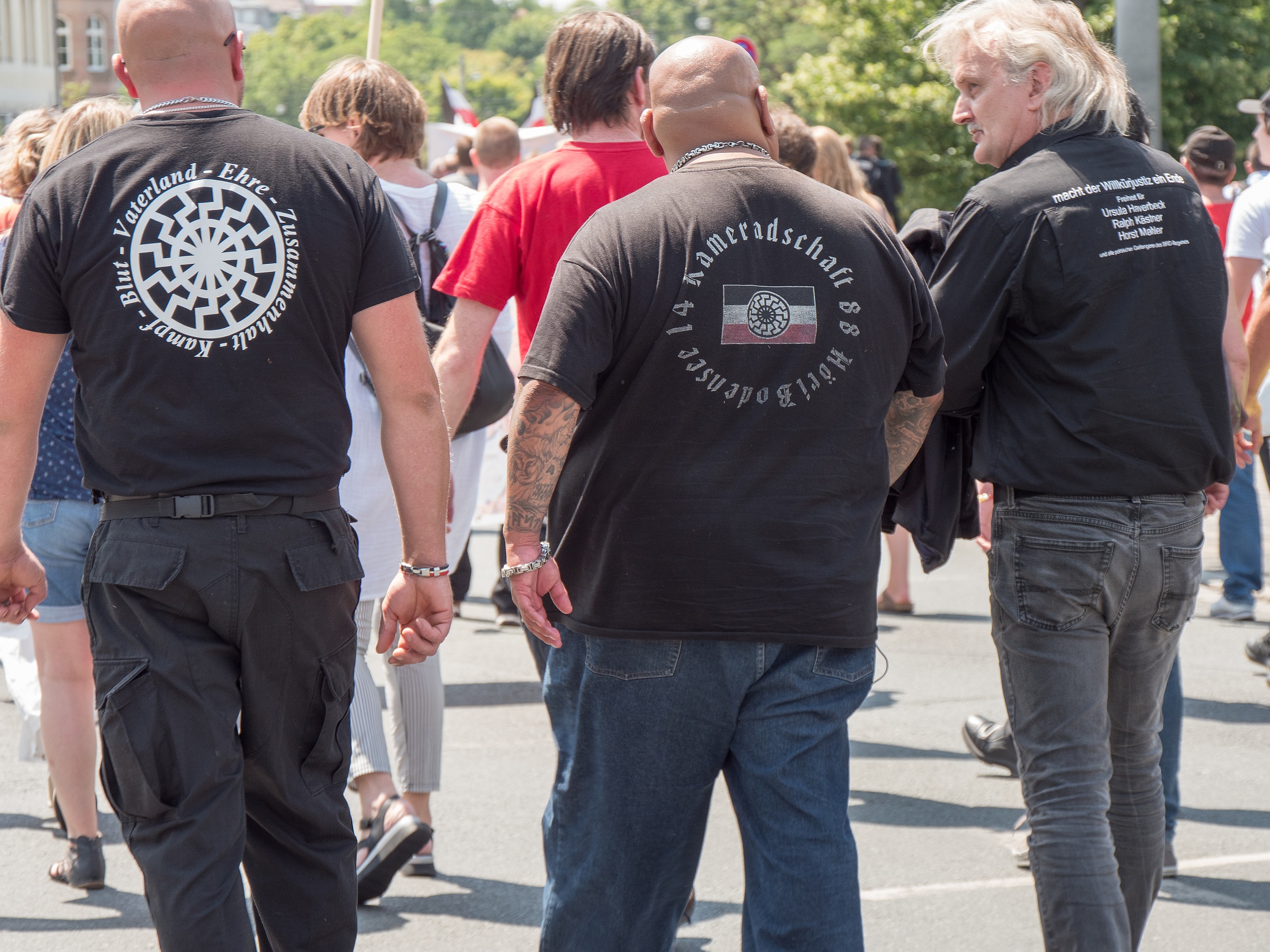Einige Aktivisten tragen T-Shirts, deren Aufdrucke sie als Teil der militanten Kameradschaftsszene identifizieren. Die Meisten aber, die unter der heißen Mittagssonne auf einer breiten Hauptstraße zur Zwischenkundgebung unterwegs sind, erscheinen dem Äußeren nach unscheinbar. Man würde sie eher mit ihren zerrissenen Hosen und der Friedenstaube auf dem T-Shirt beim Gegenprotest erwarten.