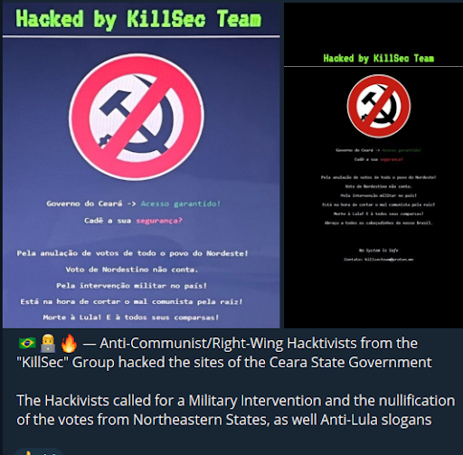 Unterstützung erhielten die Angreifenden auch im digitalen Raum: Hier hackten “antikommunistische” rechtsextreme Hacker in die Webseite der Lokalregierung in der Region Ceara.