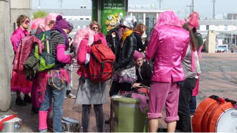 Auf der Bühne der Auftaktkundgebung – vor dem riesigen Konterfei Ahmadinetschads und dem Schriftzug „The world without Zionism“ (welches durchaus auch als Motiv zahlreicher linksextremer antisemitischer Gruppierungen gepasst hätte) – traten neben dem kürzlich zu sechs Monaten Haft verurteilten Sascha Krolzig (vgl. BTN) mehrere Sprecher radikaler osteuropäischer Gruppierungen auf. Ein größerer Teil dieser Reden zeichnete sich durch sprachliche Hilflosigkeit und schwülstige Anteile aus. Antisemitisch-rassistische Begriffe wie „Volksfeinde“, „Rothschilds Finanzimperialismus“, „nationale Sozialisten“ und ein politischer „Kampf“, der „kompromisslos geführt werden müsse“, waren durchgängig verwendete ideologische Versatzstücke, um die auch optisch sehr eindeutig als rechtsextrem erkennbaren Demonstrationsteilnehmer anzusprechen.