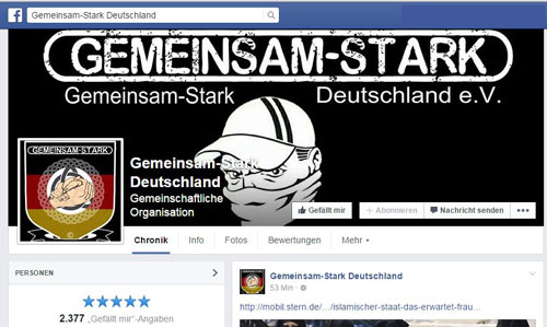 entwickelt aus: HoGeSA (Hooligans gegen Salafisten)Grund der Spaltung: die HoGeSa-Organisatoren hätten den Hooligan-Grundsatz „Gemeinsam sind wir stark“ missachtet – wie auch immer.Ort: Fulda (Gründung) / Nürnberg (Vereinssitz) – eine West-basierte Veranstaltung wie HoGeSaVerein? Ja; Gründungsmitglieder: 16 ursprünglich bei HoGeSa organisierte HooligansVeranstaltungen: bisher 1 Kundgebung, 400 Teilnehmer_innen, 08.02.2015, LudwigshafenPersonen: Marcel Bolle (erster Vorsitzende), Sven „Captain Flubber“ Heuke (zweiter Vorsitzende), Ivan Bogdanov (Kassenwart), Manu Schreiber (Kassenwart ) und Butcher (Schriftführer). Alle vorher HoGeSa laut Faszination Fankurve.Ausrichtung: Laut Website: „Bewahrung der patriotischen Interessen der Bürger in Deutschland“; „Heimat, Freiheit, Tradition“.Inhalte (Website): Die ersten 3 sollen reichen: „Für Weltoffenheit und einen natürlichen Austausch der Völker und Kulturen, ohne dabei Deutschland durch Massenzuwanderung zu islamisieren. Für den Erhalt deutscher Werte und Tugenden sowie gegen den Multi-Kulti-Wahnsinn. Für ein spezifisches Asylrecht und gegen den massenhaften Asylmissbrauch.“ Deutlicher Rechtssprech also, Ökothemen, Frieden (aka Russland), gegen EU und Nato kommen auch vor.Unterschiede zu HoGeSa: Die haben ja auf einen verschwörungstheoretisch basierten Anti-USA-Kurs umgeschwenkt, den findet man hier nicht.Fans bei Facebook (heute): 2.300, dazu Website, YoutubeMinus: Noch keine praktischen T-ShirtsVerwechslungsgefahr: Diverse harmlose Initiativen mit ähnlichen Namen, HoGeSa wegen Hooligan-Faktor und Logo-Klau