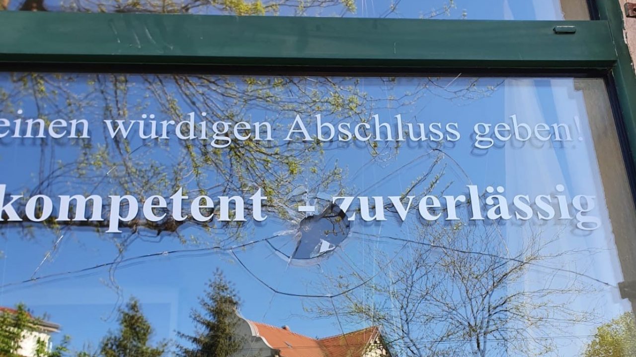 Die Nachricht erreicht Adriana und Benjamin Wolf an einem Montag Ende April diesen Jahres. In der Dresdner Filiale ihres Bestattungsunternehmens wurde in der Nacht eine der Schaufensterscheiben eingeschmissen. Die Polizei wird verständigt und der Vorfall wird angezeigt. Doch warum beschädigt jemand die Scheiben eines Bestattungsunternehmens? Spricht man mit dem betroffenen Ehepaar wird schnell klar, dass es kein unzufriedener Kunde war, sondern die Tat wohl eher politisch motiviert gewesen ist. Denn die beiden sind seit Jahren am Gegenprotest gegen Pegida beteiligt.