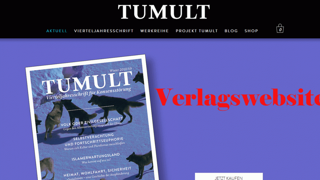 Wird herausgegeben vom Förderverein der Freunde der Vierteljahresschrift TUMULT e. V. und ist eng verbunden mit der Manuscriptum Verlagsbuchhandlung, bei der seit 2017 eine Werkreihe von TUMULT im Wechsel mit der Vierteljahresschrift für Konsensstörung erscheint.