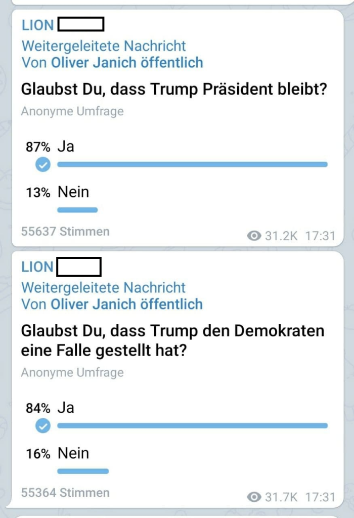 Es ist eine Falle von Trump! Jedenfalls, wenn man den Anhänger*innen von Oliver Janich auf Telegram glaubt.
