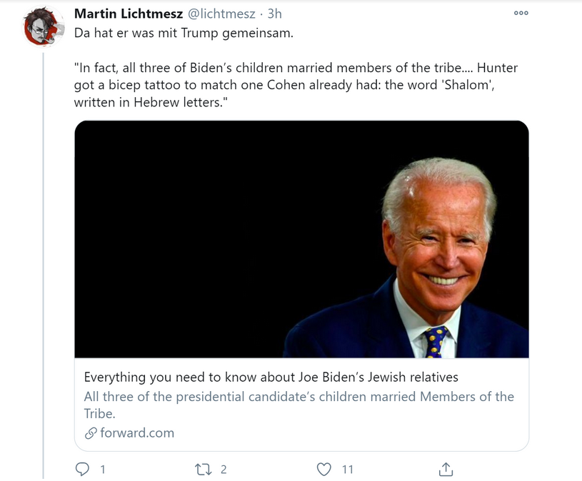 Auch antisemitische Erzählungen über Biden und seine Familie sind in der rechtsextremen Szene bereits im Umlauf: