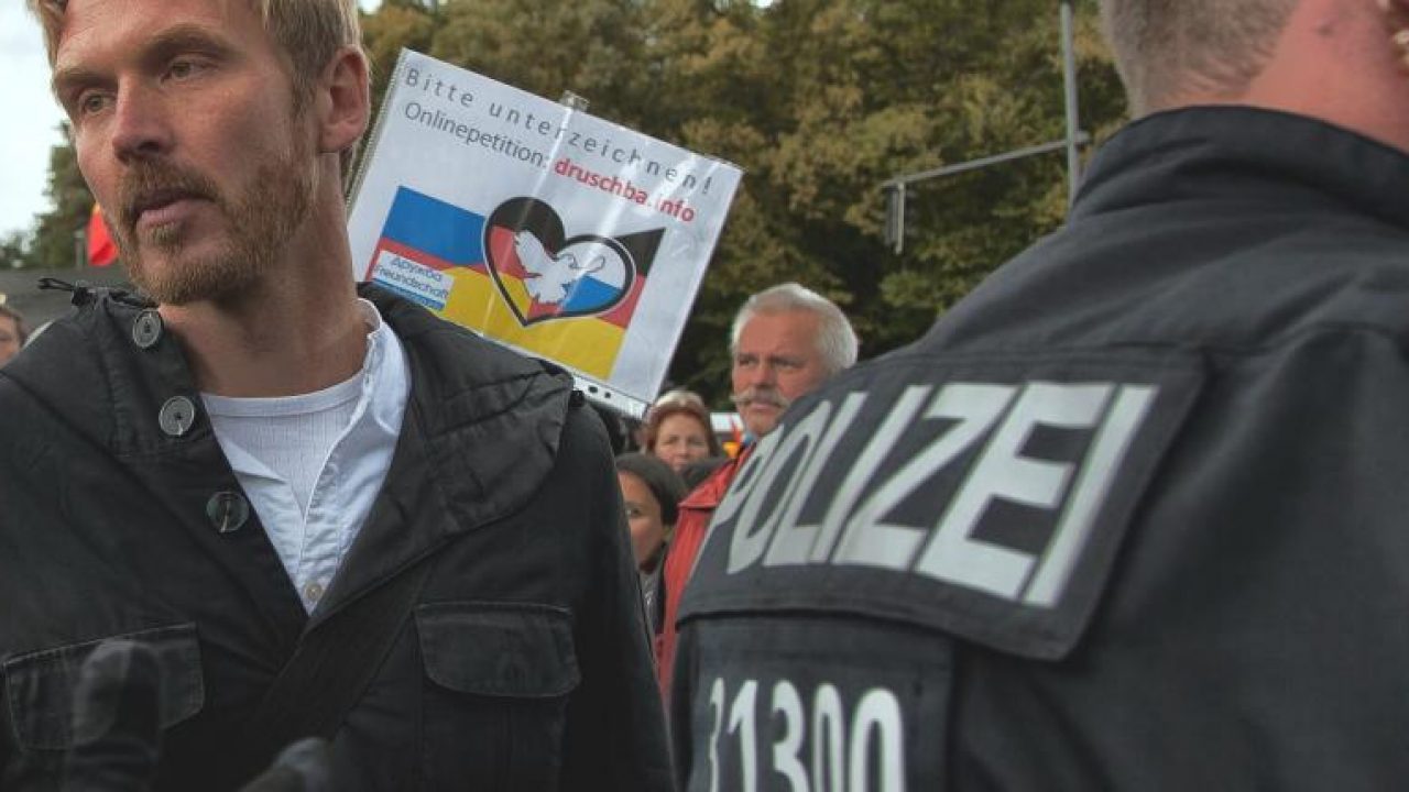 Der Grundschullehrer Nikolai N. nachdem er eine Demonstration gegen die AfD wegen Provokationen verlassen musste. (Quelle: Kay Schmitt, ReDoc - research and documentation)