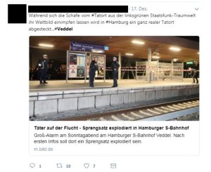 In der rechten Social-Media-Blase war sofort klar: ein weiterer Fall islamistischen Terrors in Deutschland. Mithilfe der üblichen Hashtags wurden auf Twitter Geflüchtete, Muslime oder wahlweise Kanzlerin Merkel beschuldigt, für noch mehr Terror verantwortlich zu sein.