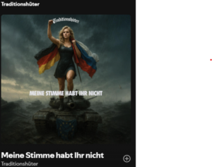 Maschner veröffentlicht seine KI-Musik über ein weiteres, sehr erfolgreiches Profil: „Traditionshüter“ setzt anders als „Partypatrioten“ auf melancholische, emotionale Sounds. Thematisch setzt „Traditonshüter“ auf nationalistische und Russland-nahe Inhalte.