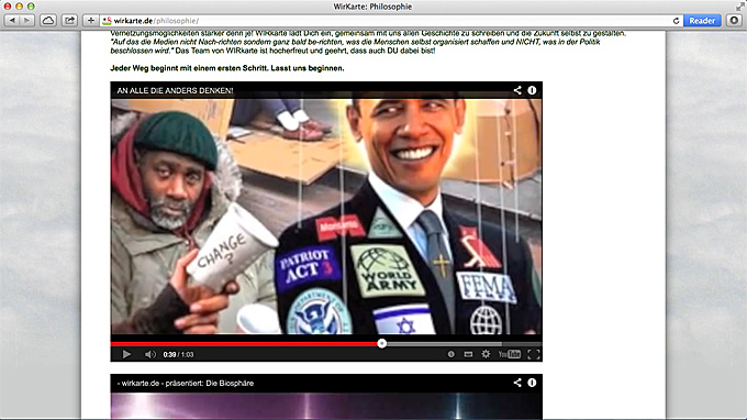Truther und Infokrieger, die angeblich die Wahrheit über die Anschläge vom 9. September 2001 in den USA herausfinden wollen, aber hauptsächlich Fehlinformationen und Verschwörungstheorien verbreiten, stehen hinter vielen Onlineaktionen und Websites und schafften es über die Occupy-Bewegung auch in Deutschland auf die Straße. Diese wiederum dürften eine Anwerbeplattform für die aktuellen Organisatoren der selbsternannten “Friedensbewegung 2014″ gewesen sein. Die esoterische Verschwörungsszene organisiert sich auf Plattformen wie “WIRkarte.de”, im “Friedensnetzwerk Wir-Gemeinsam.net” und über das Internetradio Okitalk, hängt aber auch Sekten wie “I-UV – Wir sind Eins” an.