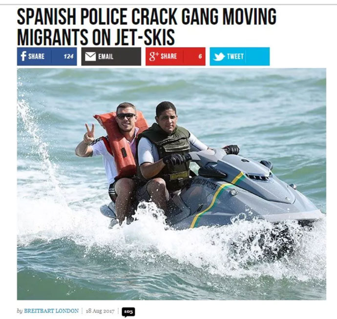 Vor einigen Tagen sorgte eine Schlagzeile und das dazugehörige Titelbild des rechtsextremen Mediums „Breitbart“ weltweit für Lacher: Der britische Ableger der ultrarechten Website von Stephen Bannon hatte ein Artikel über Schleuserkriminalität mit einem Foto des Fußballers Lukas Podolski bebildert, der glücklich auf einem jet-Ski sitzt.