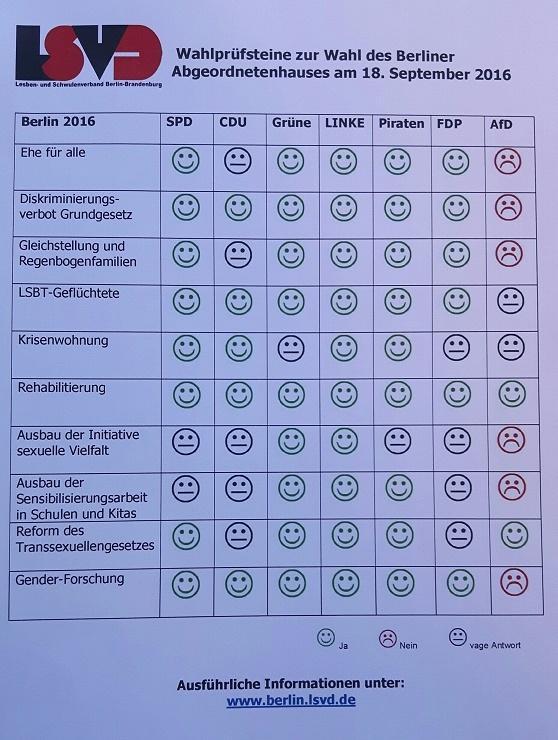 Bei einer LGBTIQ*-Online-Umfrage im September 2016 vor der Abgeordnetenhauswahl in Berlin der Universität Wien und der Justus-Liebig-Universität Gießen wurde diese Tendenz bestätigt: