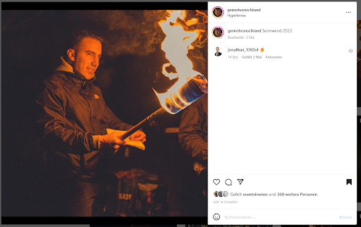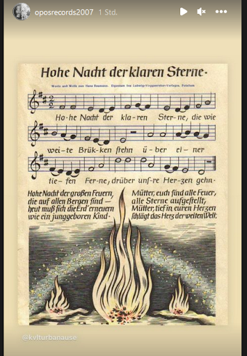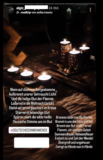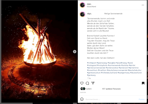 Schön hier: “Heilige Sonnenwende”, „Heil dem Licht, heil den Göttern“, aber in der Story dann schön auf Englisch vertaggen.