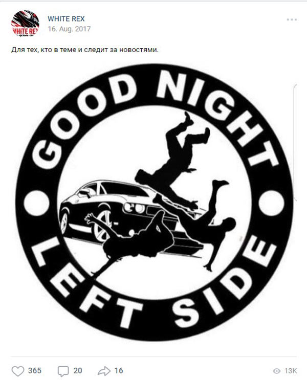 Einn Post von White Rex kurz nach dem Mord eines Rechtsextremen in Charlottesville Quelle: Screenshot VK