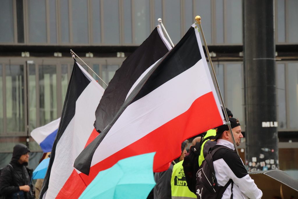 Unter dem Motto „Tag der Nationen“ sammelten sich am Donnerstagnachmittag, angeblich nur besorgte Bürger*innen, Reichsbürger*innen, Querfrontler*innen und offene Neonazis auf dem Washingtonplatz vor dem Hauptbahnhof, schwenkten Deutschland- und Reichskriegsflaggen. Der Demo-Zug sollte bis zum Alexanderplatz durch die Stadt gehen.