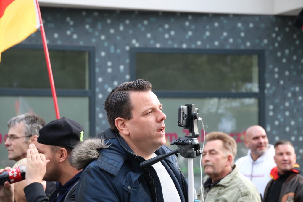 Auch mit dabei war der extrem rechte Youtuber Henry Stöckl. Er streamte die Demo per Livestream.