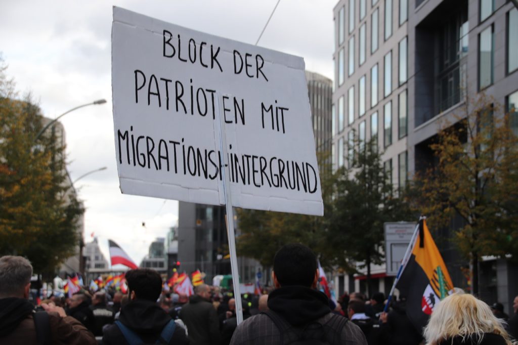 „Block der Patrioten mit Migrationshintergrund“ auf der rechtsextremen Demo.