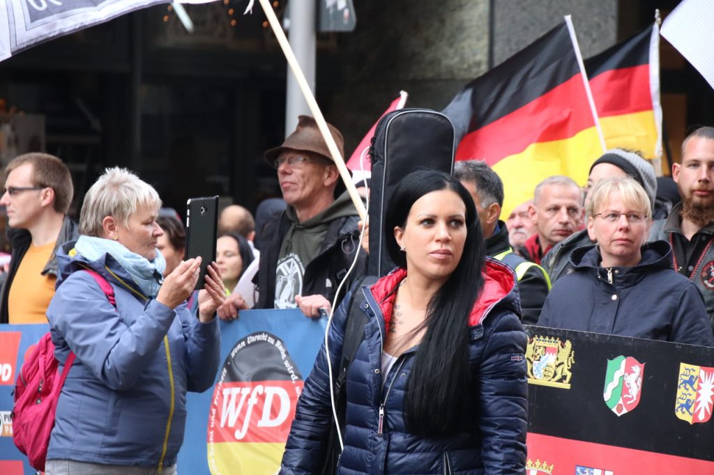 Lisa Licentia, eine angebliche Aussteigerin aus der sogenannten „Identitären Bewegung“ war auch beim rechten Aufmarsch dabei. Lisa H, die unter ihrem Künstlernamen einen Youtube-Kanal betreibt, war lange Zeit Top-Aktivistin in der IB. Nun regt sie sich hauptsächlich auf Youtube über die millionenfache „Völkerwanderung“, die vielen Imbisse und Billigläden auf.