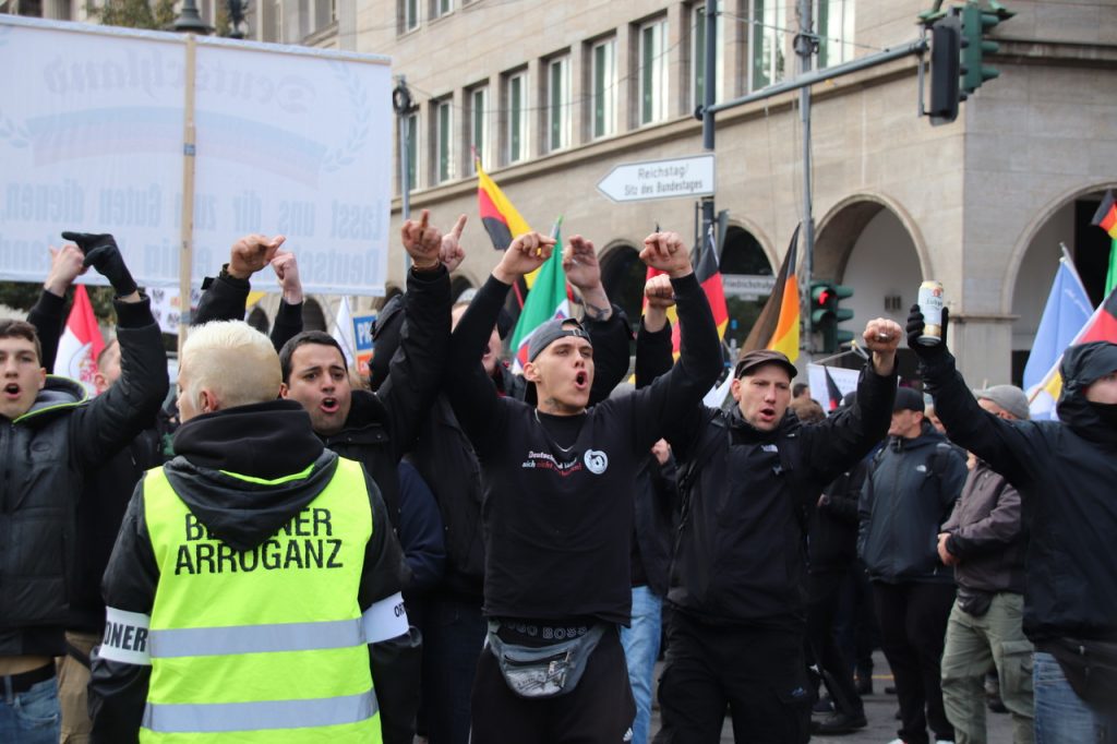 Immer wieder säumten Gegendemonstranten die Route der rechten Demonstranten.