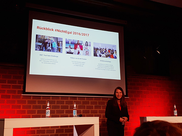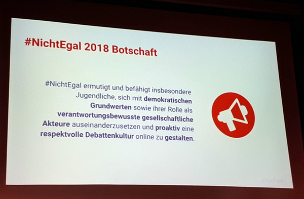 #Nichtegal ist eine Initiative von Google/YouTube und Partnern wie der Freiwilligen Selbstkontrolle Multimedia (FSM), der Medienbildungsagentur medienblau, klicksafe und den Digitalen Helden, unterstützt von der Amadeu Antonio Stiftung. Respekt und bessere Debattenkultur im Netz sind Sabine Frank, Leiterin Regulierung, Verbraucher- und Jugendschutz bei Google Deutschland, ein großes Anliegen: “In Schulen zu gehen hat sich als ein sehr erfolgreiches Konzept erwiesen. Wir müssen ja versuchen, die Debattenkultur positiv zu beeinflussen. Wenn die älteren Jugendlichen, die wir fortbilden, die jüngeren Jugendlichen ihrer Schule coachen, hat das fantastische Effekte.” Eine Wirkungsstudie, die Google dazu in Auftrag gab, zeigte: 9% der Teilnehmer_innen hatten trotz des ernsten Themas Spaß an den Workshops. 90% der jüngeren Schüler_innen fanden es toll, von den Älteren gecoacht zu werden, 89% der älteren Schüler_innen hat es Spaß gemacht, Verantwortung zu übernehmen. “Das,” sagt Sabine Frank, “hilft auch ganz konkret dem Schulklima.”