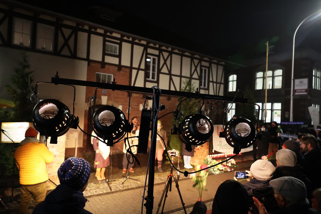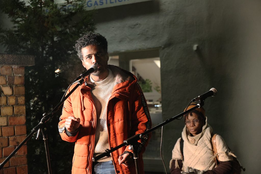 Ahmed Rahama, ein 35-jähriger Geflüchteter aus dem Sudan, ist sauer. „Jeden Montag machen die Rechten eine Kundgebung und schließen die ganze Straße bis zum Bahnhof“, sagt er ins Mikro. Er meint damit die wöchentlichen Demonstrationen der Pandemieleugner und Putinversteher. Es sei respektlos, dass heute die Straße für Amadeu Antonio nicht gesperrt sei, sagt er. Und dass sich Menschen nur einmal im Jahr am Tatort versammeln, reicht ihm nicht: „Wir brauchen kein Mitleid. Wir müssen das Problem des strukturellen Rassismus im ganzen Landkreis Barnim beenden.“