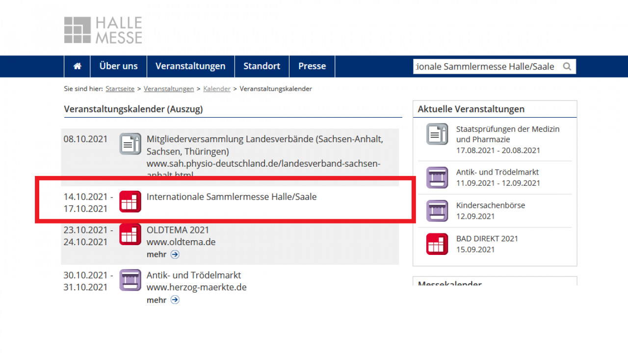 Nun soll in Halle vom 14. bis zum 17. Oktober 2021 die sogenannte “Internationale Sammlermesse Halle/Saale (ISM)” stattfinden, die ebenfalls von Wolf Krey veranstaltet wird. Ausgerechnet in Halle, ausgerechnet an diesem Datum. Zufall oder Absicht?